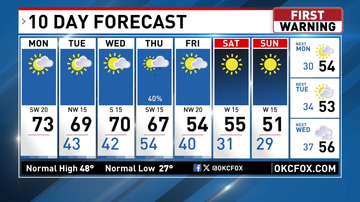 OKC Temp: 50°F, Fair